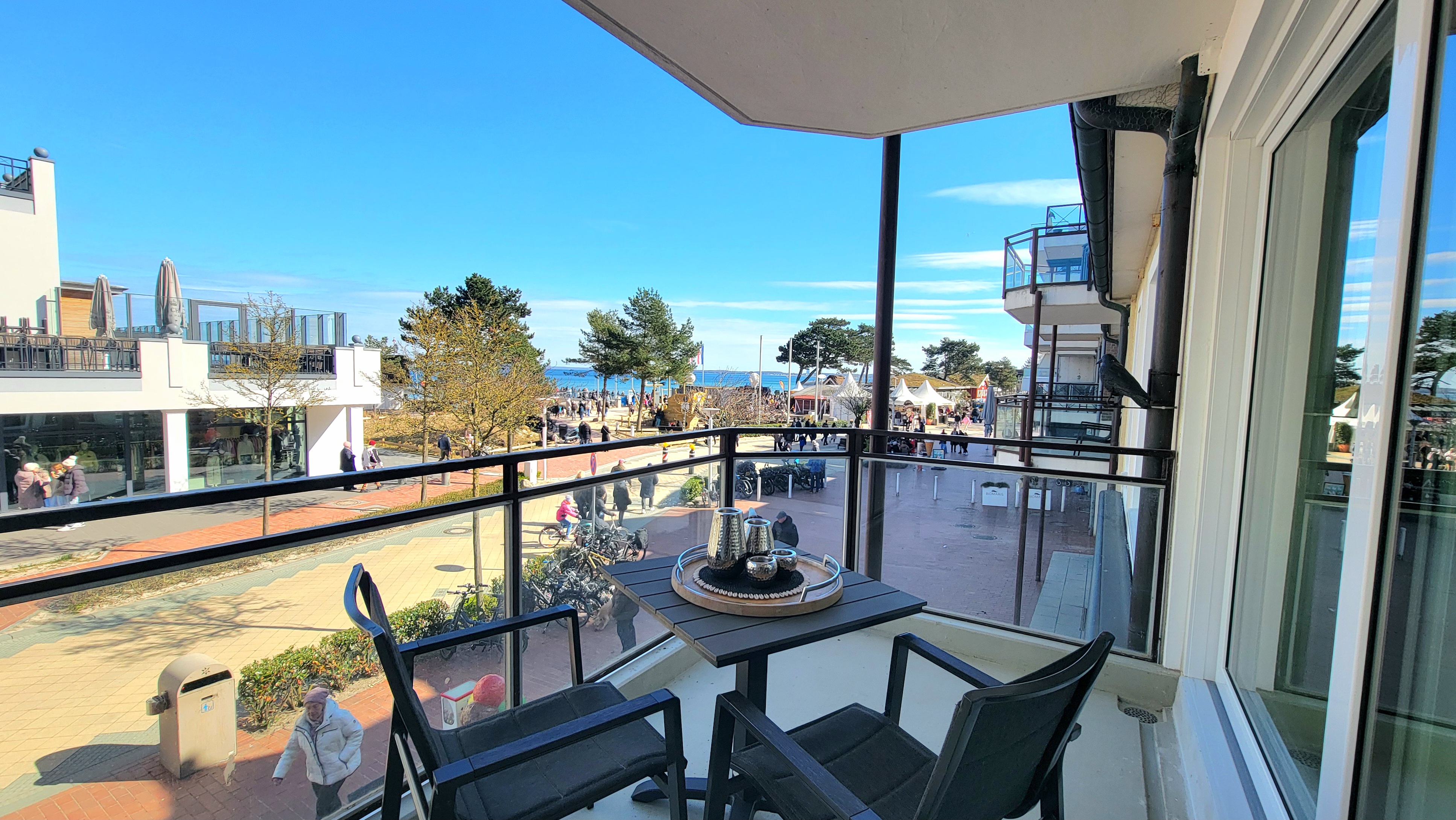 Direkt vor der Haustür finden Sie: die Dünenmeile mit zahlreichen Restaurants z.B. Fisch Gosch, Grande Beach Cafe, Herzberg´s, das kleine Steakhaus,  Ahoi by Henssler, das Leo, Cappolino ...), die Seebrücke,  mehrere Geschäfte, Bäcker, Eiscafe´s, das Bayside Hotel, Apotheke, Ärzte, Kurpark, Minigolf, Fahrradverleih,  Ostseetherme und vieles mehr.
